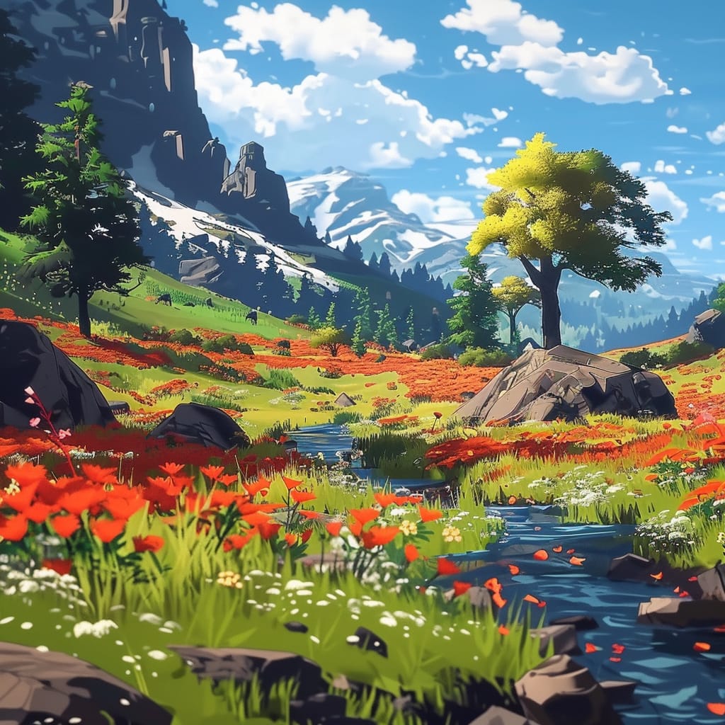- Wild scenery, flower fields, rivers, movie-level rendering --sref 490772078 --stylize 200