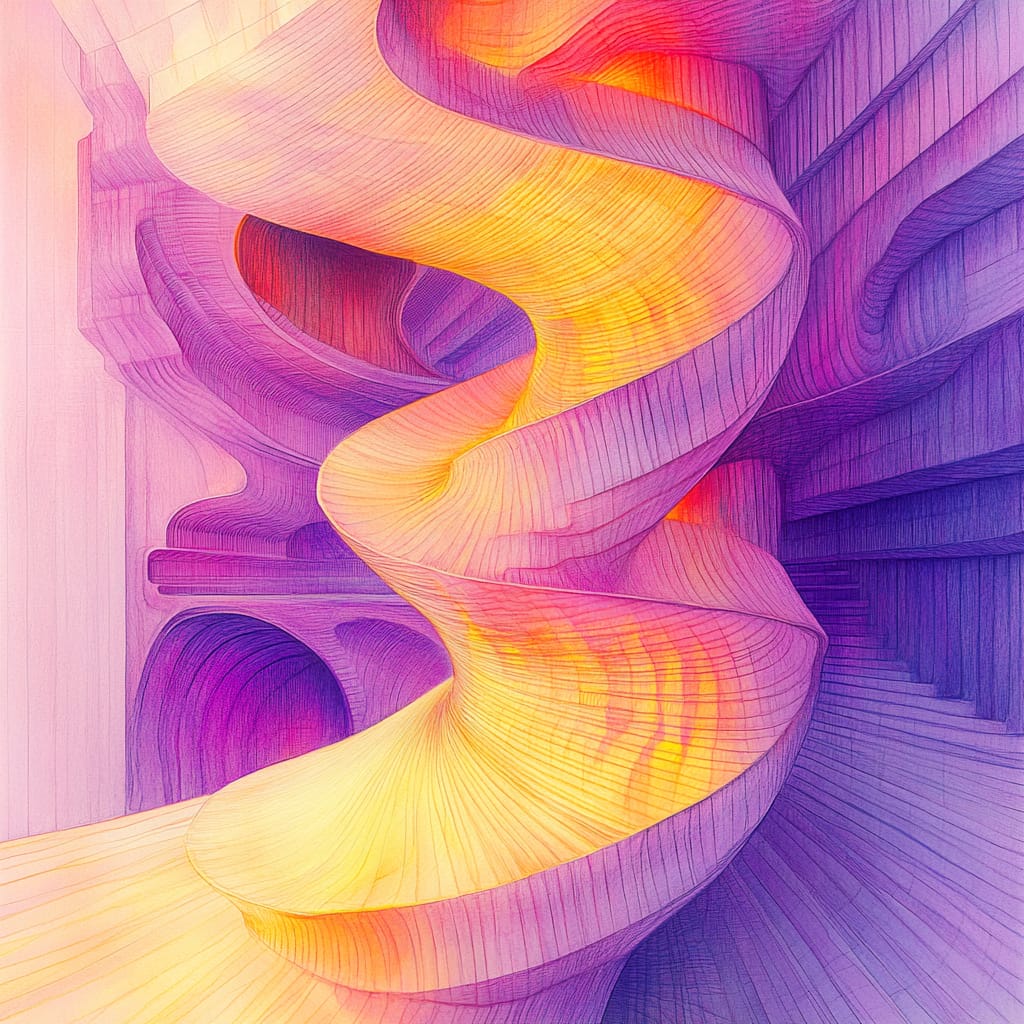- Twisting architectural spirals, elegant helix-like columns, flowing curves with biomorphic influence, glowing details, dynamic and gravity-defying structures, seamless transitions between solid and void --sref 655345489 --v 6.1 --stylize 200
