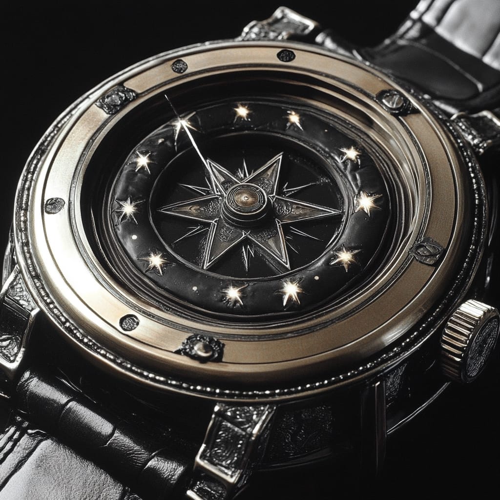 - A celestial compass with rotating, intricate constellations and glowing runes, designed as the centerpiece for an avant-garde timepiece collection --sref 360690461 --stylize 200