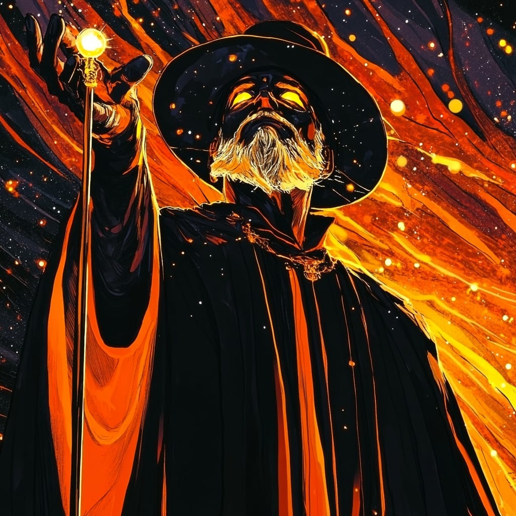 - Magician, Black Robes, Ancient Wand, Brilliant Gems --sref 632584643--v 6.1--stylize 200