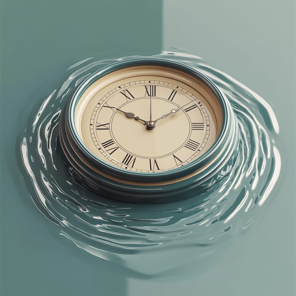 - A surreal depiction of a clock melting into a reflective pool; ripples in the water distort time itself, creating an abstract, dreamlike composition --sref 368005234 --stylize 200